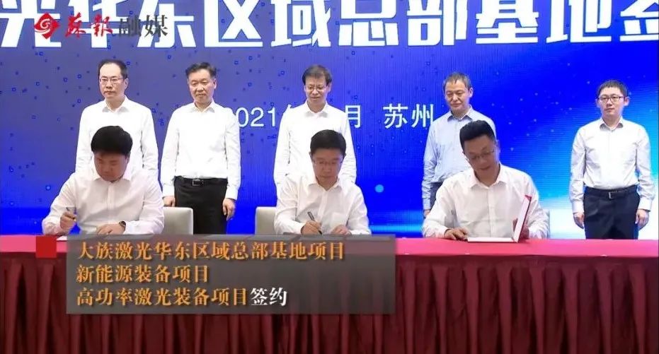 大族控股集團有限公司副總裁張永龍、安春澤,大族激光副總裁黃祥虎,大族激光極限制造及行業(yè)專機事業(yè)群智能切割總經(jīng)理胡瑞,大族激光投資總監(jiān)岳明;蘇州市委常委、秘書長潘國強,張家港市委書記韓衛(wèi),張家港市委副書記、代市長蔡劍鋒,張家港市委常委、保稅區(qū)黨工委副書記、管委會副主任陸崇珉,張家港保稅區(qū)管委會副主任顧衛(wèi)彬,以及蘇州市和張家港市有關部門主要負責同志共同參加簽約活動。